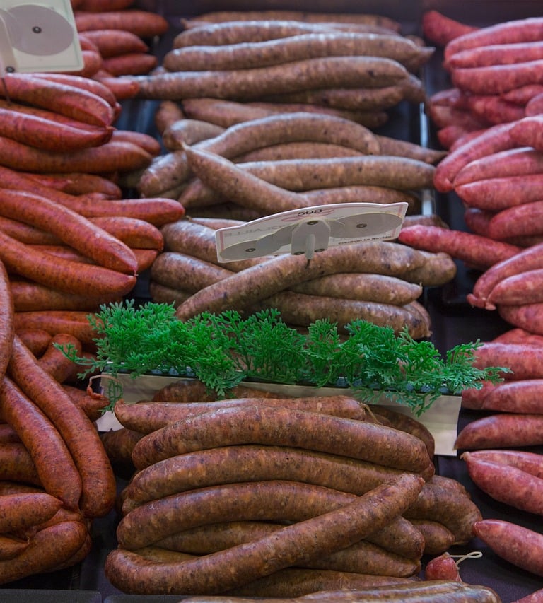 Merguez et saucisses de plusieurs saveurs et origines
