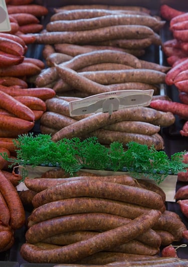Merguez et saucisses de plusieurs saveurs et origines